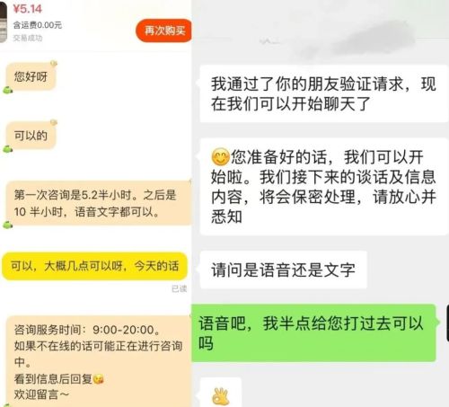 页面显示,卖家是一位九零后女生,从事公益九年,我用五元钱买下了三十分钟的语音通话,电话打过去,对方告诉我所有讲的话都会保密,可以放心诉说。我讲述了和一个朋友最近出现的沟通问题,对方帮助我梳理清楚了想法,平静温和的声音的确有起到肯定和接纳自我的作用,我因友谊裂痕引发的焦虑也有所改善。